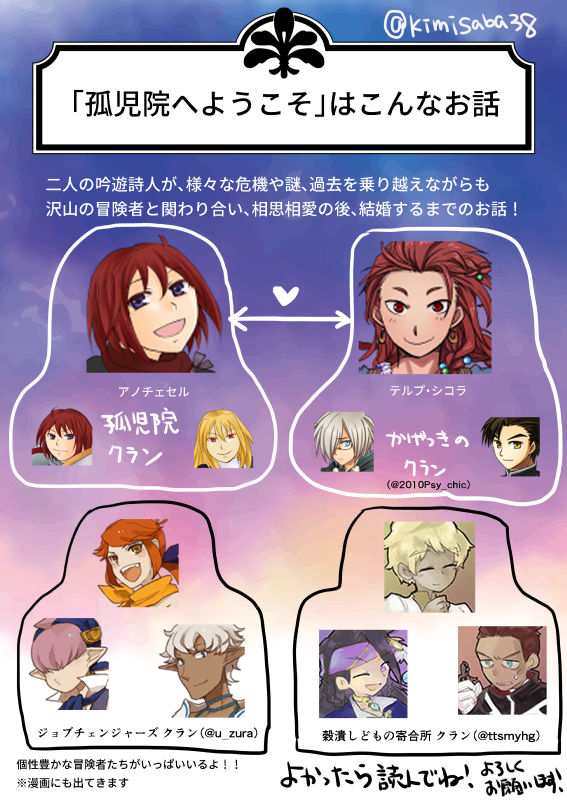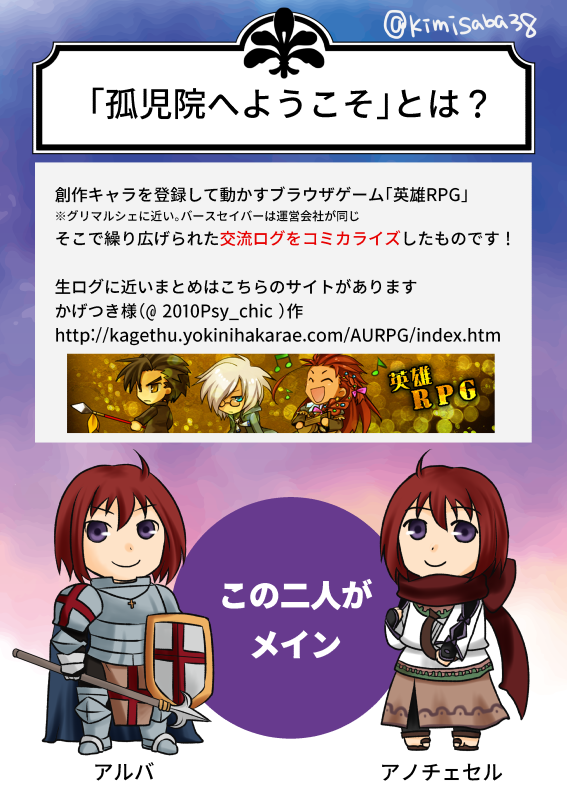 ここはアルバ、アノチェセルを中心として他のキャラクターとの交流ログをコミカライズしたものが置かれています。主にかげつき様とのキャラクターとの交流がメインとなっております。