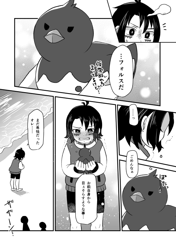 指定ログを漫画に起こすだけなら1Pでできるところを少しでも経緯を説明できるように工夫してます。1Pの2コマ目とか。セリフで卑怯者とか言われているコマ一つあるだけでもこのキャラの説明ができたと思うんですがどうでしょう!?