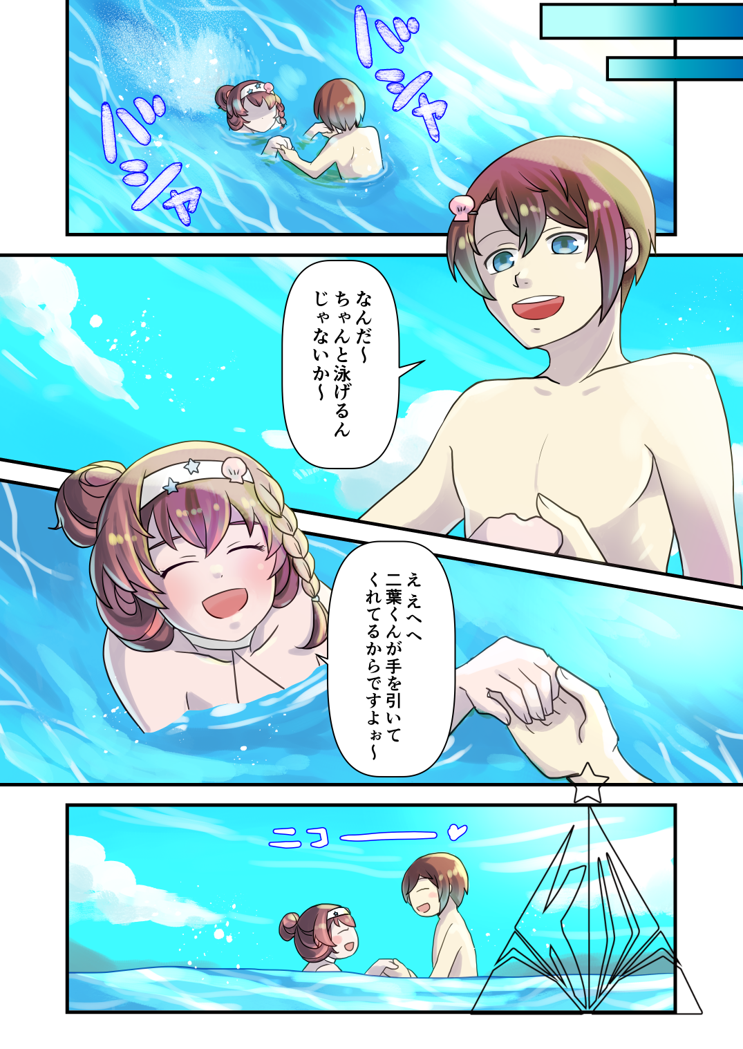 ちなみに最初は前半パートを漫画にするつもりでした。こちらの方がセリフ的にも編集しやすいし場面も楽なんですが、後半部分の方がこはりさんと春花さんの推しである宗一郎さんの良さを出せるのでこちらにしました。