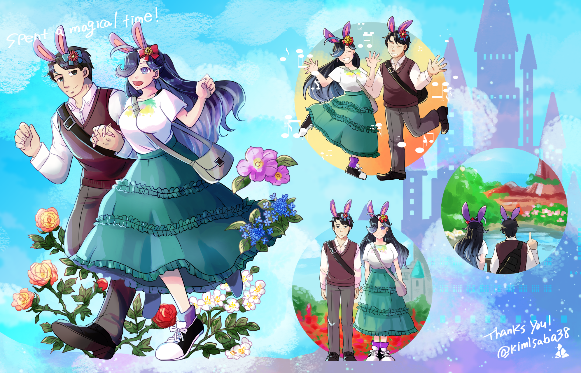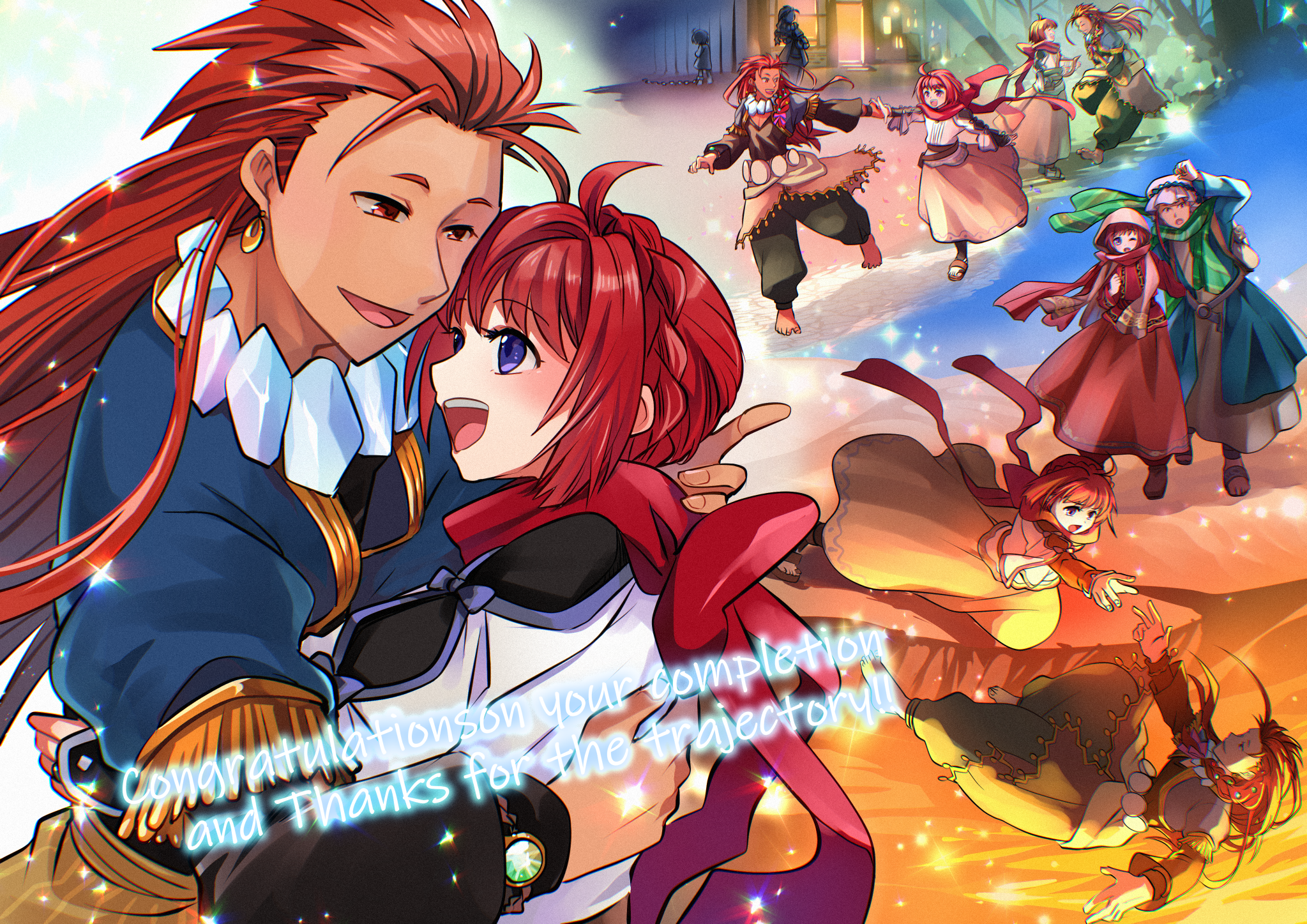 みて!とても素敵!一番奥が二人の幼少時代、次が最初の連れ出し、二人が付き合ってからの最初のデート、故郷への旅路、テルプさん救出失敗シーン(そのご巻き戻りへ)と、思われます。テルプさん救出失敗のやつは漫画オリジナルシーンですね、そこ描いていただけるの恐縮すぎる。